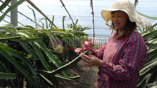 “这是火龙果,火龙果树是仙人掌科三角柱状的植物,所以看起来像是仙人掌。”大棚的主人姚祥美的介绍,让记者这才发现,红色的果实竟然是火龙果。