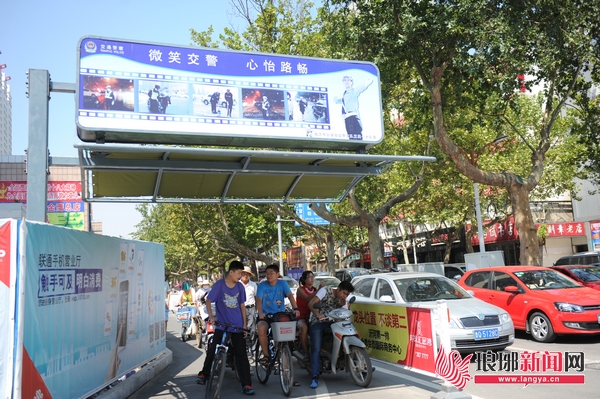 临沂市区两个路口已设遮阳棚 市民闯红灯明显减少