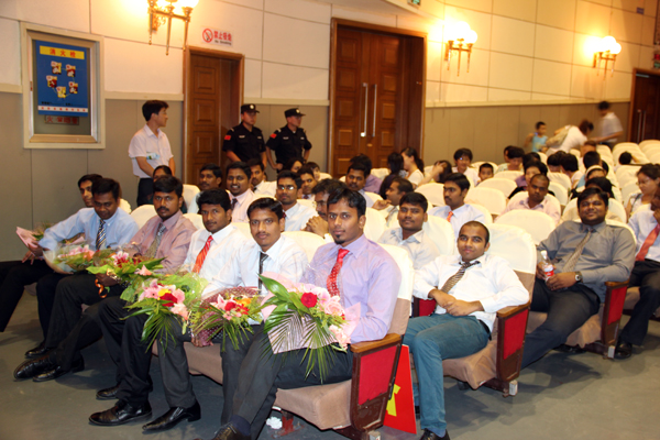 远古苍凉的和音演唱,似有神谕的婆娑舞姿,在达克莎·谢思与鼓手越来越快、越来越激烈的斗舞中落下帷幕。公司印度员工在异国他乡观看这样一场印度舞蹈演出后,难掩内心的激动与自豪,不约而同地走上舞台,献礼致敬交流感情,并依依不舍地告别返程。