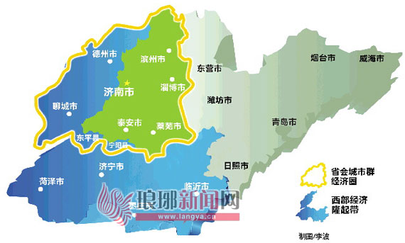 西部经济隆起带,范围包括枣庄、济宁、临沂、德州、聊城、菏泽6市和泰安市的宁阳县、东平县,共60个县(市、区)。规划在鲁苏豫皖冀五省交界的长条地带,依托贯穿其中的交通干线和优势资源,以现代农业为基础,以区域性中心城市和重点城镇为骨架,以特色产业为支撑,形成若干发展高地,对周边地区产生聚吸优质生产要素的“海绵”效应和商品流通、产业辐射的“泵压”效应,充分利用后发优势,实现科学跨越发展。