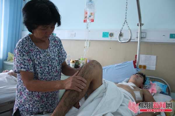 据刘振海的母亲李凤菊介绍,8月7日儿子出事后被送到了临沂市中医医院抢救,在监护室里住了十多天,直到17日才有些意识。后转到了市人民医院骨科医疗区。