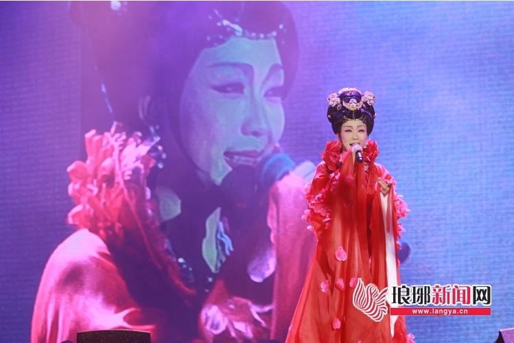 李玉刚在演唱《为了谁》,他炉火纯青的反串技艺带给观众视听双重享受,博得了雷鸣般的掌声