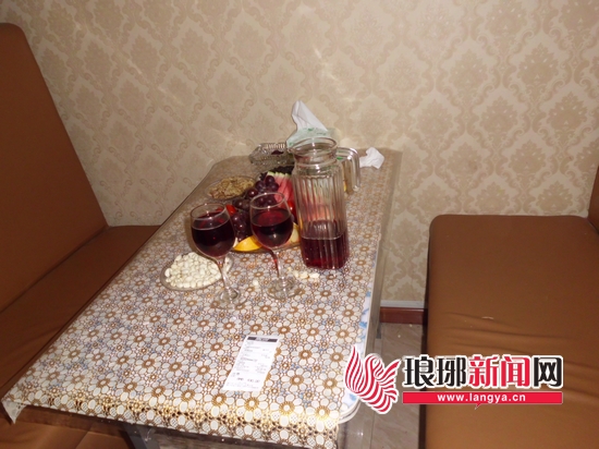 在“休闲小屋”里,一大杯红酒外加一个果盘,报价480元。