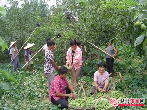 费县马庄镇青年核桃收获突击队在收获核桃。