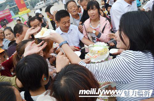 游客分享临沂动植物园搬迁一周年纪念蛋糕。