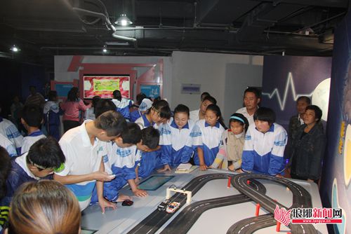 在脑科学展厅,学生正在用注意力来控制小汽车