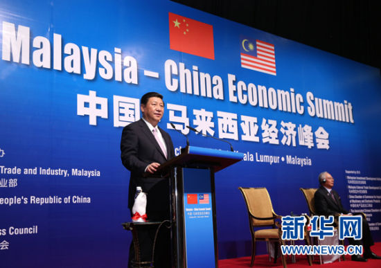 10月4日,国家主席习近平和马来西亚总理纳吉布在吉隆坡共同出席中马经济合作高峰论坛,就加强两国务实合作、中国经济发展发表重要讲话。新华社记者 庞兴雷 摄