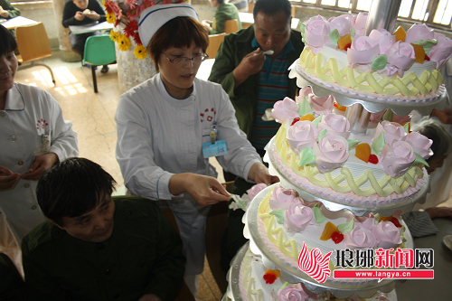 重阳节到来之际,临沂市精神卫生中心为住院的30余名老年精神心理障碍患者买来了蛋糕。