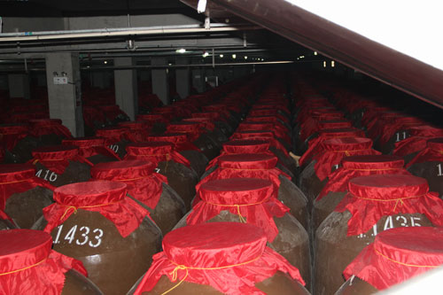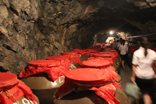 万吨地下酒窖共有1万多个吨缸,吨缸的高度为1.6米,直径1.2米,每个酒缸的储酒能力高达1吨,“吨缸”由此得名。酒窖全部采用优质陶缸来储存原酒,原酒在这里得到进一步的陈酿老熟,发生各种物理、化学、生物变化,酒体日趋平和、缓冲、细腻、柔顺、协调。
