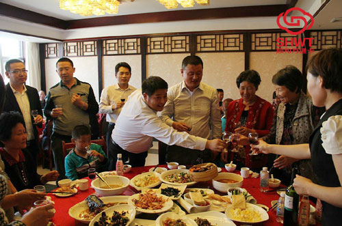 中午所有人于羲之宾馆就餐。就餐途中,顺和集团董事长马龙刚先生发表讲话。他为所有父母深深一鞠躬表达祝福和感谢:“中秋节公司给所有员工的父母送上了一份心意两张千元的体检卡,今天恰逢重阳节邀请诸位大爷,大娘们来顺和集团,就是为了让所有顺和的父母看到他们的孩子在干什么,干了什么,将来要干什么,让每一位父母放心安心舒心。”随后,马董事长与所有父母碰杯,祝福他们健康长寿。河南焦作合作商杜总看到此情此景,万分感慨,他称看见老人就是看见了家,顺和是一个讲究孝道的企业,未来与顺和的合作将充满希望。