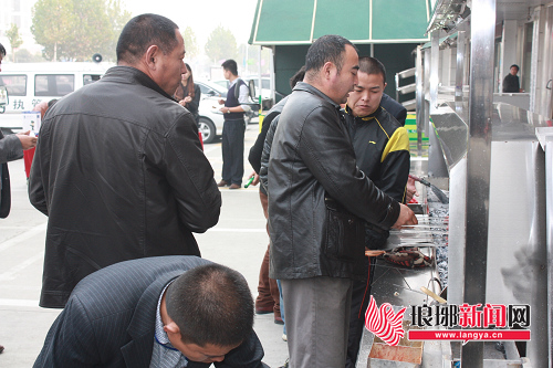 为了取得更好的推广效果,在兰山城管分局和商城城管分局两个会议现场,工作人员安排了新型环保无烟烧烤炉的产品介绍,烧烤师傅现场使用无烟烧烤炉具烧烤羊肉串,设备厂家工作人员耐心地给广大烧烤店店主介绍产品的结构、使用方法、工作原理等。