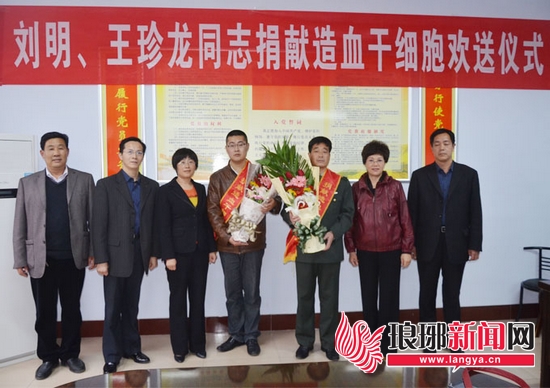 11月8日下午,临沭县志愿者刘明、王珍龙同赴济南市捐献造血干细胞欢送仪式在临沭县卫生局三楼会议室举行。