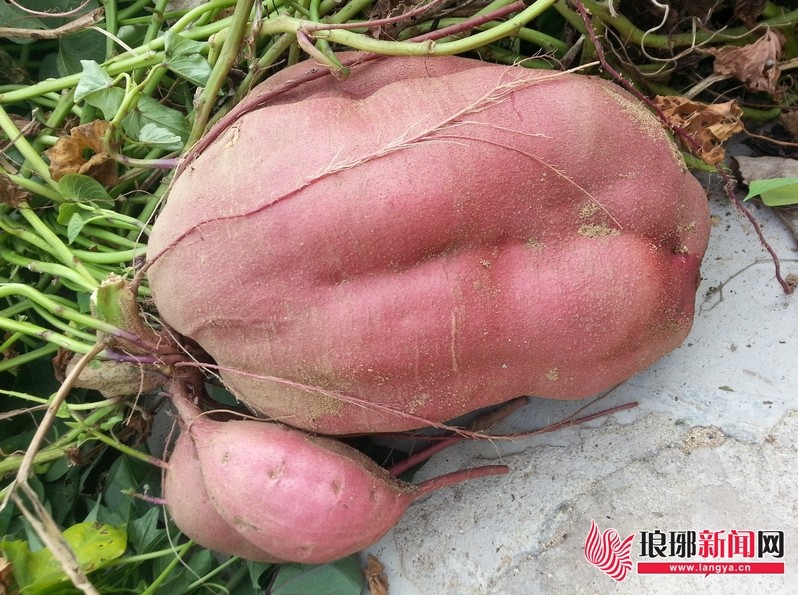 在其家院里,还有没刨完的地瓜,倪宗芝亲属便刨出几个,记者看到,刚刨出的地瓜重量都在两三斤左右,比16斤的这个地瓜小很多。