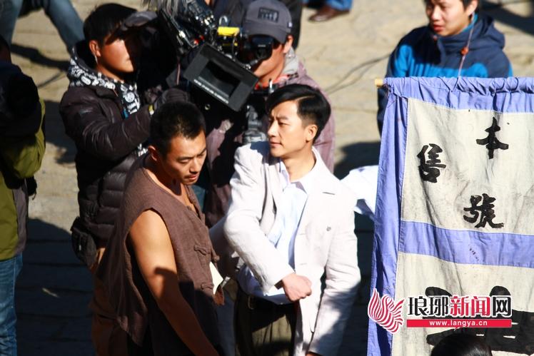 今天上午要拍摄场景的是:男一号朱亚文饰演的余占鳌与男二号黄轩饰演的张俊杰因追求“九儿”(周迅饰演),而产生摩擦,张俊杰拳打余占鳌的场景。