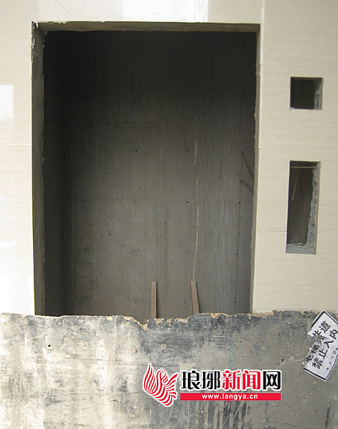 敞开的电梯井在事故发生后,已经用简陋的木板挡住。