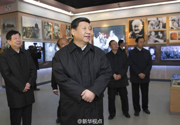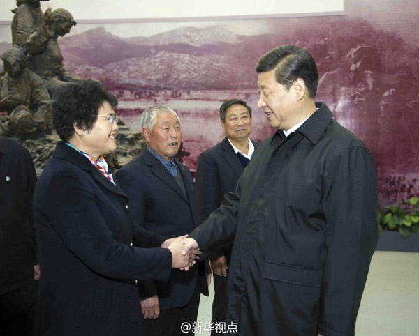 习近平在展厅会见了“沂蒙母亲”王换于孙女于爱梅等模范人