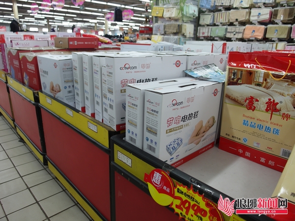 沂蒙路与金源路交会处一超市在销售电热毯