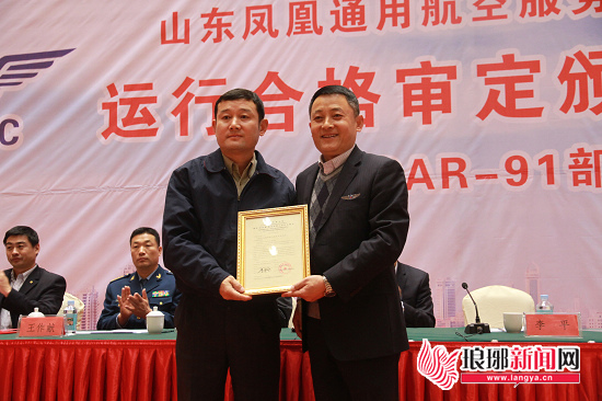 民航山东监管局向山东凤凰通用航空有限公司颁发《商业非运输运营人运行合格证》
