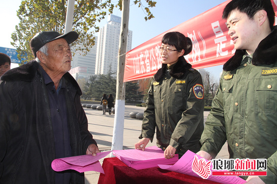 今天临沂交通运输局在全市举行了《山东省公路路政条例》(下文简称《条例》)集中宣传日活动,路政工作人员走上街头向市民讲解《条例》内容。12月1日起《条例》将开始实施。
