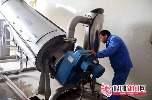 处理场的工作人员正在查看絮凝脱水机