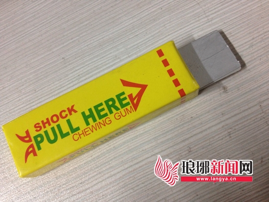 “难道家长所反映的情况不属实?”带着一丝失望和疑问,记者又来到了金雀山小学。在校门口的东侧有几个推着三轮车的商贩正在贩卖玩具。“你这里有那种带电的口香糖吗?”“有啊!5块钱一个,你要几个?”在其中一个挂满玩具的三轮车上,一位40多岁的妇女答道。“你要‘黄箭’还是‘白箭’口香糖?我这还有一种带电的小手枪的呢!”说罢,摊主拿住了两个“带电”口香糖。记者注意到,带电“口香糖”外表与普通口香糖并无太大差别,只是上面通体除了一些英文字母外没有任何中文标示。“这东西怎么玩啊?”“你拽一下露出头的这半截口香糖就行,试试有没有电。”摊主笑着说。“疼不疼啊?会不会被电击伤啊?”“你试试吧?我没试过,应该没有事,要是有事的话早就有学生来找我了……”摊主有些不耐烦地说道。为了一探究竟,记者只得鼓足勇气用手一拽露出的半截口香糖,顿时一股麻麻的感觉从手指直接传到了手腕处。