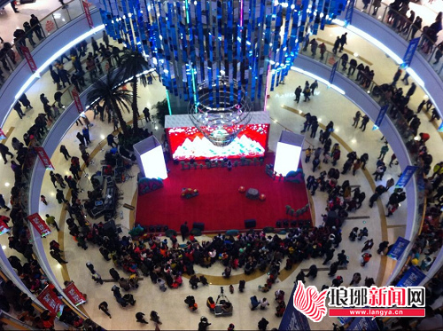 “人山人海” 24日晚为平安夜,众多商超借此推出打折等优惠促销。在市区一大型购物广场5楼俯视,走廊、过道上前来购物的市民摩肩接踵、人山人海。 摄影 记者郑文婷