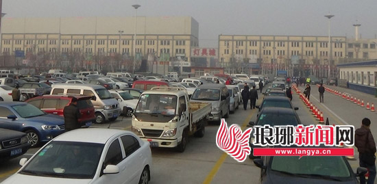在临沂市车管所院内,办理相关手续的车辆排起了长龙。