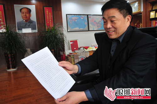 在获悉11位旁听省政协十一届二次会议的群众代表有一位是来自咱们临沂后,14日下午,记者对该代表——临沂兴大集团党委书记相荣涛进行了专访。初见相荣涛时,他正忙着安排外出前的相关工作事宜,“16日就将赴济南报到了,我得赶紧把家里的工作安排妥当。”安排完后,相荣涛边邀请记者就坐,边介绍着刚刚的工作。