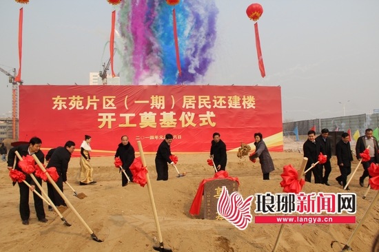 16日,临沂东苑片区一期还建居民楼举行了开工奠基仪式。据了解,此次征收改造是临沂市委、市政府确定的2013年中心城区旧城改造提升的重点工程之一。该地块还建楼3栋,总建筑面积84525.22平方米,占地面积7144平方米,拟于近期开工建设,预计2015年建完。