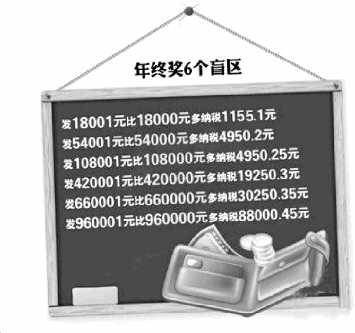记者咨询了兰山区地税局金雀山分局的工作人员,工作人员告诉记者,网上流传的“年终奖一元钱临界点效应”确实存在,发18000元的奖金采用3%的税率,与此同时发18001元的奖金则采用10%的税率,仅1元之差,却要多缴1155.1元,这就出现了“多发少得”。记者在网上疯传的“年终奖个税临界点”图表中发现,在很多情况下,多发1元会少拿上千元,而更有甚者,是年终奖960000元和960001元之间的情况,960001元对应的税率是45%,960000元对应税率则是35%,1元之差税后所得反而减88000.45元。这就意味着多发1元少收入8万多元。
