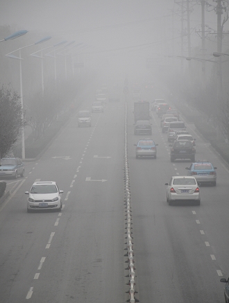 前段时间,在临沂市区北园路与沂蒙路交会处,能见度在200米左右,给市民出行带来了许多不便 资料片