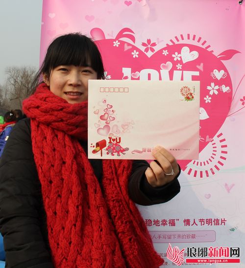 14日,临沂市邮政局在罗庄区双月湖公园举办了“寄爱临沂”之“稳稳的幸福”情人节明信片慢寄活动,受到活动现场年轻人的欢迎,521套明信片被当场抢购一空。