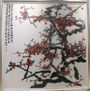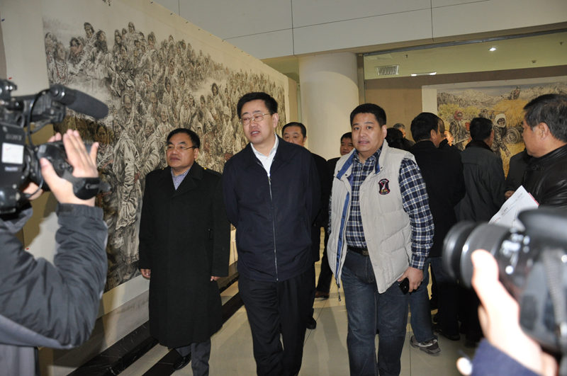 临沂作协主席,著名作家高振老师与顺和股份董事长马龙刚先生陪同侯晓滨副市长参观画展。