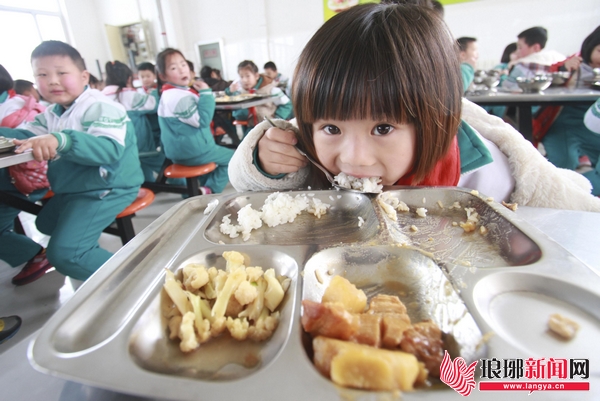 随着11点20分放学铃声的响起,安静的校园顿时热闹起来。在老师的带领下,各个年级的学生排着整齐的队伍向校内餐厅走去,而餐厅内的餐桌上,家长已经为孩子们盛好了饭菜。