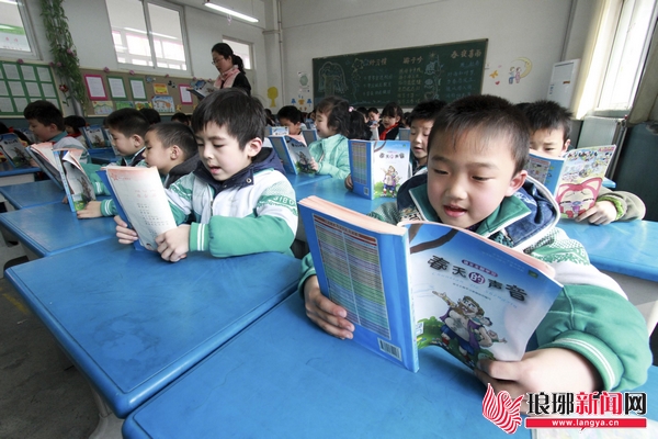 24日13时,午休后的学生们在进行经典诵读。