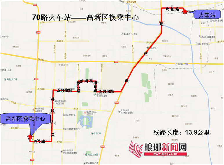 临沂市区开通70路公交线路 由火车站至高新区