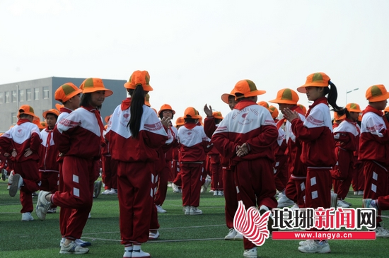 图为开发区一小的学生们在表演快乐课间操
