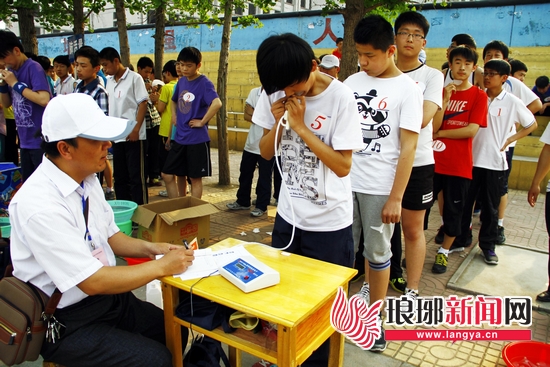 考生进行肺活量测试。(资料图片)