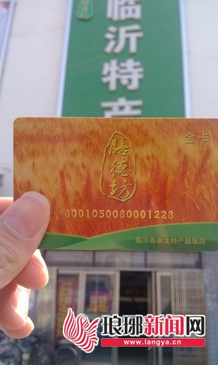 记者看到王女士的这张会员卡,卡的正面写着“膳德坊金卡”字样,下面标明了“临沂首家土特产超级店”,背面是该店的地址和联系电话,并有该卡的部分说明。
