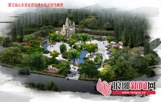 图为第五届山东省东营园博会临沂园鸟瞰图