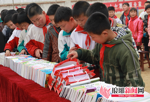 据了解,此次娟家的三所书屋共分三个学校,居位于费县梁邱镇。其中,柱子完小位于该镇最东部,与柱子山隔河相望,因此而得名。学校始建于1985年,服务16个自然村的孩子们,8个教学班,一所幼儿园,学生380名。 息城联小,学生264名,来自8个自然村,学前班一个。 镇东联小始建于1996年,有马蹄河,东梁邱,杨树行三村投资30万建成,来自16个自然村,8个班级,301名学生,一所幼儿园。由于学生多,图书少,3所小学的图书均无法满足学生需求;同时大多数图书比较陈旧,破损,有些图书随着社会发展,人类进步以及学生特点,已经不适应当今学生的阅读要求。爱心使者严先生告诉记者:“学生渴望有一部分科幻、动漫、童话、寓言、历史故事等种类的图书。他们渴望着具有现代气息的图书,用来丰富自己的知识,开发自己的智力,武装自己的头脑,陶冶自己的情操,为将来打下坚实的基础。”