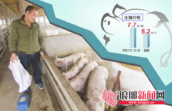 “现在临沂市场上的生猪收购价格已经是11年来的最低价了。”临沂市兰山区半程镇西石沟村养猪户徐怀法对目前的生猪市场一片迷茫。徐怀法养猪8年了,但他觉得还是看不透现在的这个行情:从去年11月一斤7.7元,到现在的一斤5.2元,“跌跌不休”的架势一点也没有要停止的意思。“咬咬牙再坚持一年,实在不行就得转行了。”徐怀法无奈地摇头。