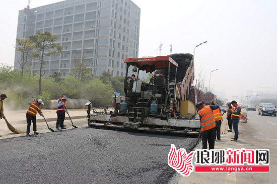 图为经过连续奋战,沂蒙北路方涵工程提前7天进行路面恢复