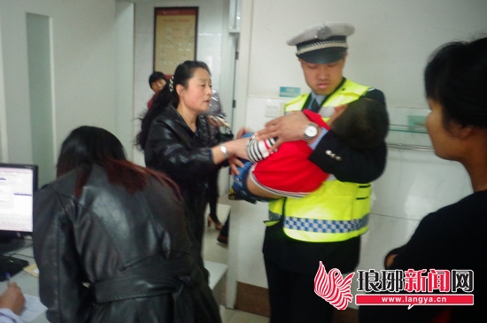 3日7点30分,临沂市公安局交警直属二大队五中队民警在辖区水田路与琅琊王路交会处执勤时,一位女士向民警求助称,她怀中的男孩因感冒高烧导致昏迷,需要马上送到医院。而此时正值上班高峰,水田路与琅琊王路交会处车辆非常拥挤。