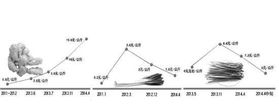 近几年葱姜蒜薹价格走势图一览(注:以上价格均为地头收购价)。