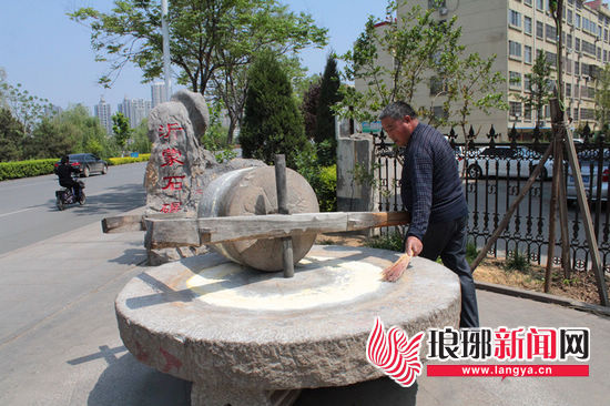 那这石碾到底是哪来的呢?记者采访得知,原来这石碾是附近一家山东辣椒炒肉店的老板几年前买来安在这的,不仅自己用,也供其他市民免费使用。18日中午,记者联系到辣椒炒肉店的老板杨俊生。杨俊生告诉记者,现在很多孩子甚至年轻人都不认识石碾,出于一种文化保护和传承的考虑,3年前,他几经周折从蒙阴的一个村庄买来了石碾和石磨,“孩子们看到这个后不仅知道了石碾是什么,也可以加深对过去艰苦生活的印象。”杨俊生说道,对他来说这也算是“留一个纪念”。而且,因为自己店里的一些菜品都是用石碾轧的花生等材料做的,有了石碾不仅能保证店里菜品的口味,也方便了其他市民。