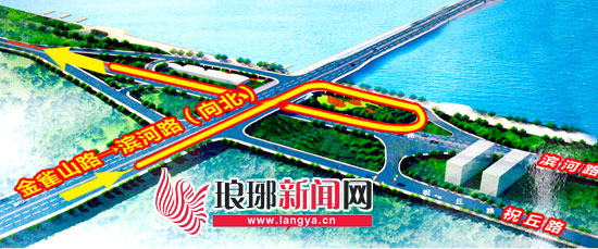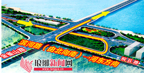 2、金雀山路→滨河路(三河口隧道、沂蒙路立交方向):