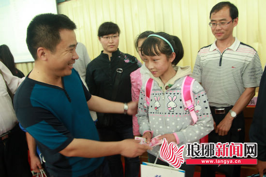 25日,临沂兰心公益协会的部分会员来到蒙阴县举行了捐资助学活动,界牌小学的李杰、蒙阴一中的石绍宏等10名家庭困难、品学兼优的学生每人获得了1000元助学金以及牛奶、新衣服、文具等爱心物品。