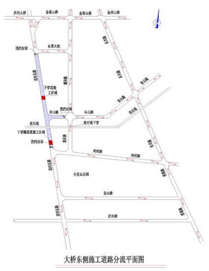 4、封闭滨河东路与巩村路交口北侧,禁止车辆沿滨河东路向北行驶。