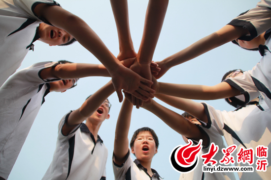 临沂九中九年级学生考前互相加油、打气